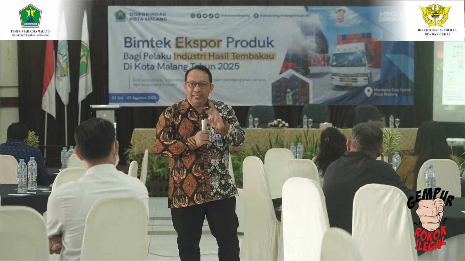 Bimtek kali ini menghadirkan dua narasumber, yaitu Pitoyo Pribadi (Kepala Seksi Penyuluhan dan Layanan Informasi Bea Cukai Malang) dan Lucky Kristian (Kepala Bidang Pengembangan Perdagangan Luar Negeri Disperindag Jawa Timur). Kegiatan ini pun menjadi wujud nyata kolaborasi lintas sektor untuk memperkuat jejaring ekspor dan dukungan instansi terkait dalam membangun ekosistem ekspor hasil tembakau yang berkelanjutan di Kota Malang. (kmf-yuni)