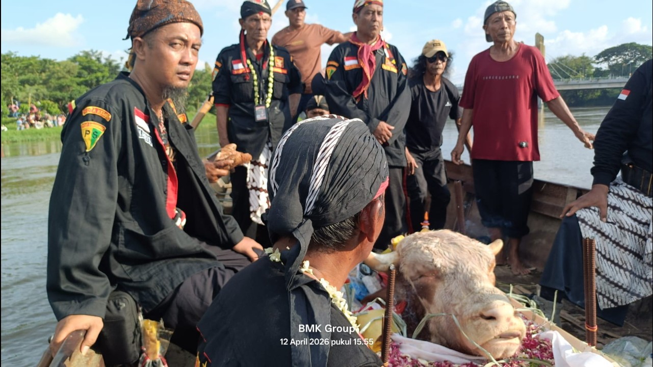 Sesampainya di bantaran Sungai Brantas, dilaksanakan prosesi pelarungan sesaji. Sebelum pelarungan Kepala Lembu, para bopo sepuh melaksanakan suguh sesaji dan doa kemudian dilanjutkan dengan menaiki perahu menuju tengah sungai Brantas untuk prosesi pelarungan. Urutan pelarungan diawali dengan pelarungan sesaji Jawa, pelarungan sesaji hidup (ayam dan bebek), kemudian dilanjutkan dengan pelarungan Kepala Lembu.