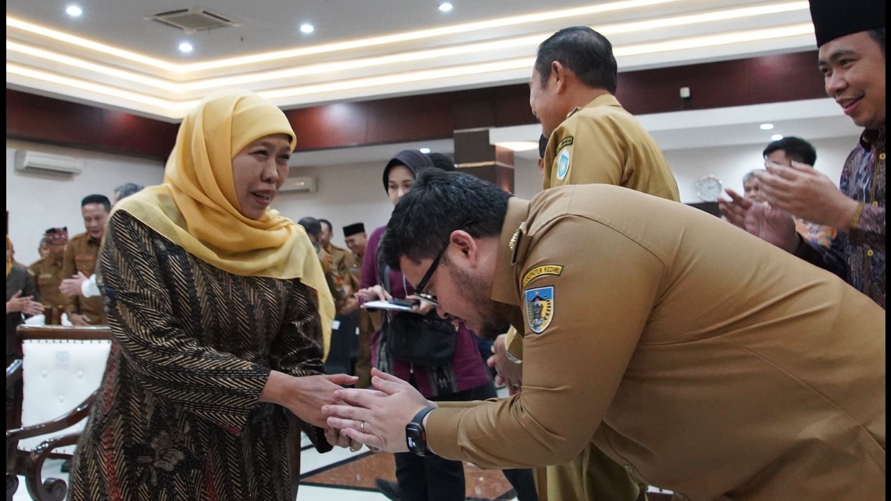 “Harapan kami semua, seluruh kabupaten/kota di Jawa Timur semua nanti pada akhirnya mencapai opini WTP,” ucap Gubernur Khofifah. (diskominfokdr/Panggah)