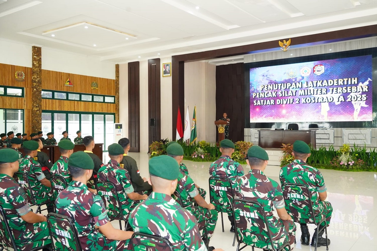 Malang, www.beritamadani.com – Divisi Infanteri 2 Kostrad kembali menegaskan komitmennya dalam pembinaan personel melalui Penutupan Latihan Kader Pelatih Pencak Silat Militer (PSM) yang digelar di Markas Divif 2 Kostrad. Kegiatan ini dipimpin langsung oleh Panglima Divif 2 Kostrad, Mayjen TNI Susilo, dan dihadiri oleh para Asisten Kasdivif serta para Komandan Satuan Jajaran (Dansatjar) Divif 2 Kostrad. Jumat (24/10/25).