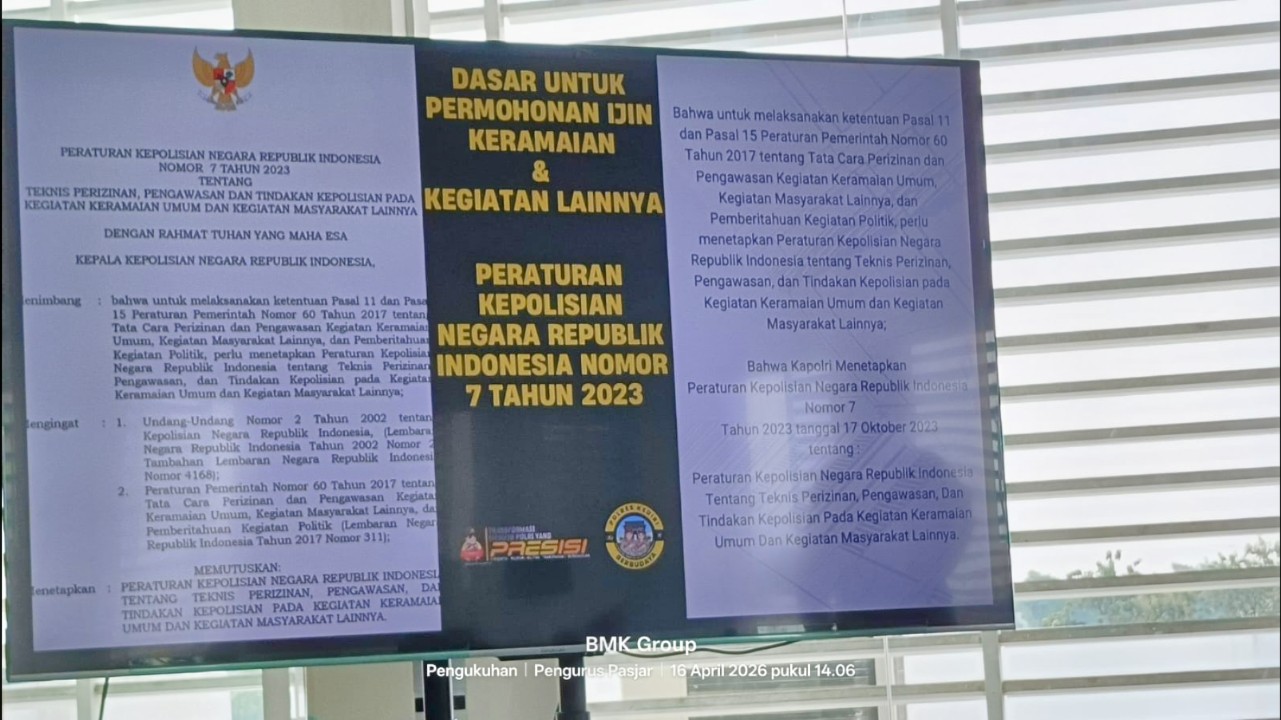 “Dasar untuk permohonan izin keramaian dan kegiatan lainnya yaitu Peraturan Kepolisian Negara Republik Indonesia No. 7 tahun 2023 yang mengatur tentang teknis perizinan, pengawasan, dan tindakan kepolisian terhadap kegiatan keramaian umum serta kegiatan masyarakat lainnya. Peraturan ini mencakup prosedur perizinan untuk keramaian, tontonan umum, dan arak-arakan di jalan umum untuk menjamin keamanan”.
